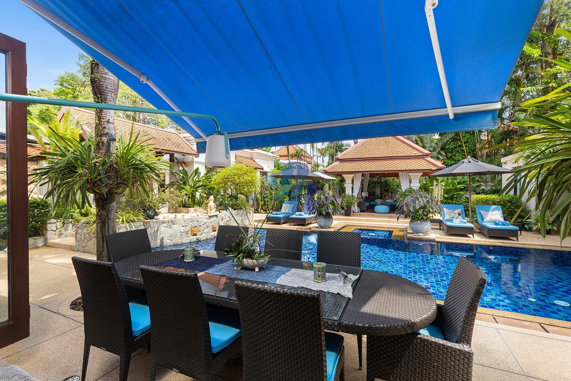 Вилла имеет 282 кв. м внутренней жилой площади, включая опциональный садовый люкс, который служит четвертой спальней. Одна спальня в настоящее время оборудована как домашний офис и может быть легко переоборудована в полноценный гостевой люкс. Интерьер дополняется дополнительными 211,5 кв. м застроенных открытых зон отдыха, включающих бассейн, просторную террасу у бассейна, беседку, бар и крытый навес для автомобиля — создавая гармоничное сочетание внутреннего и внешнего пространства, идеально подходящее для жизни на Пхукете.
