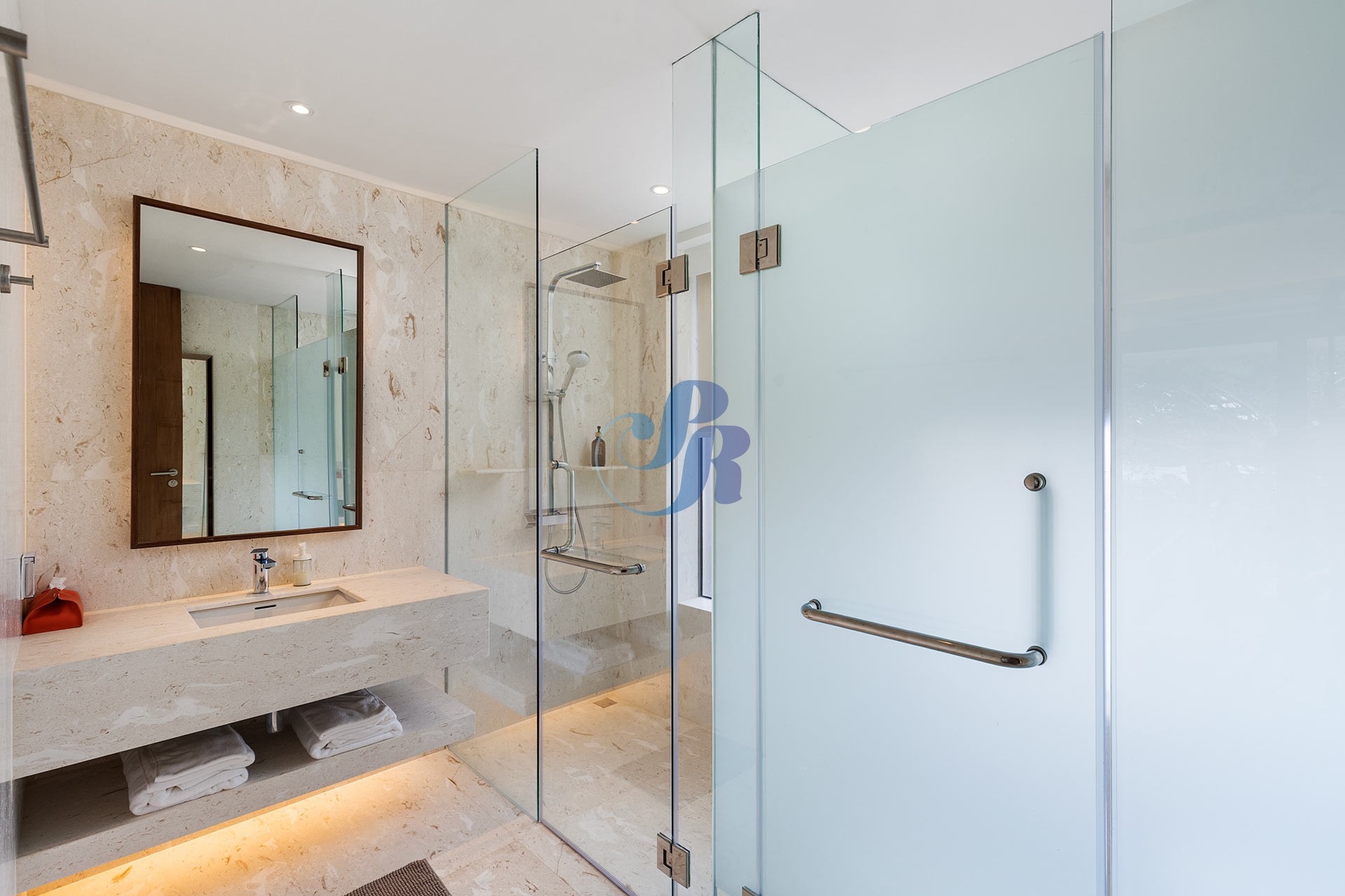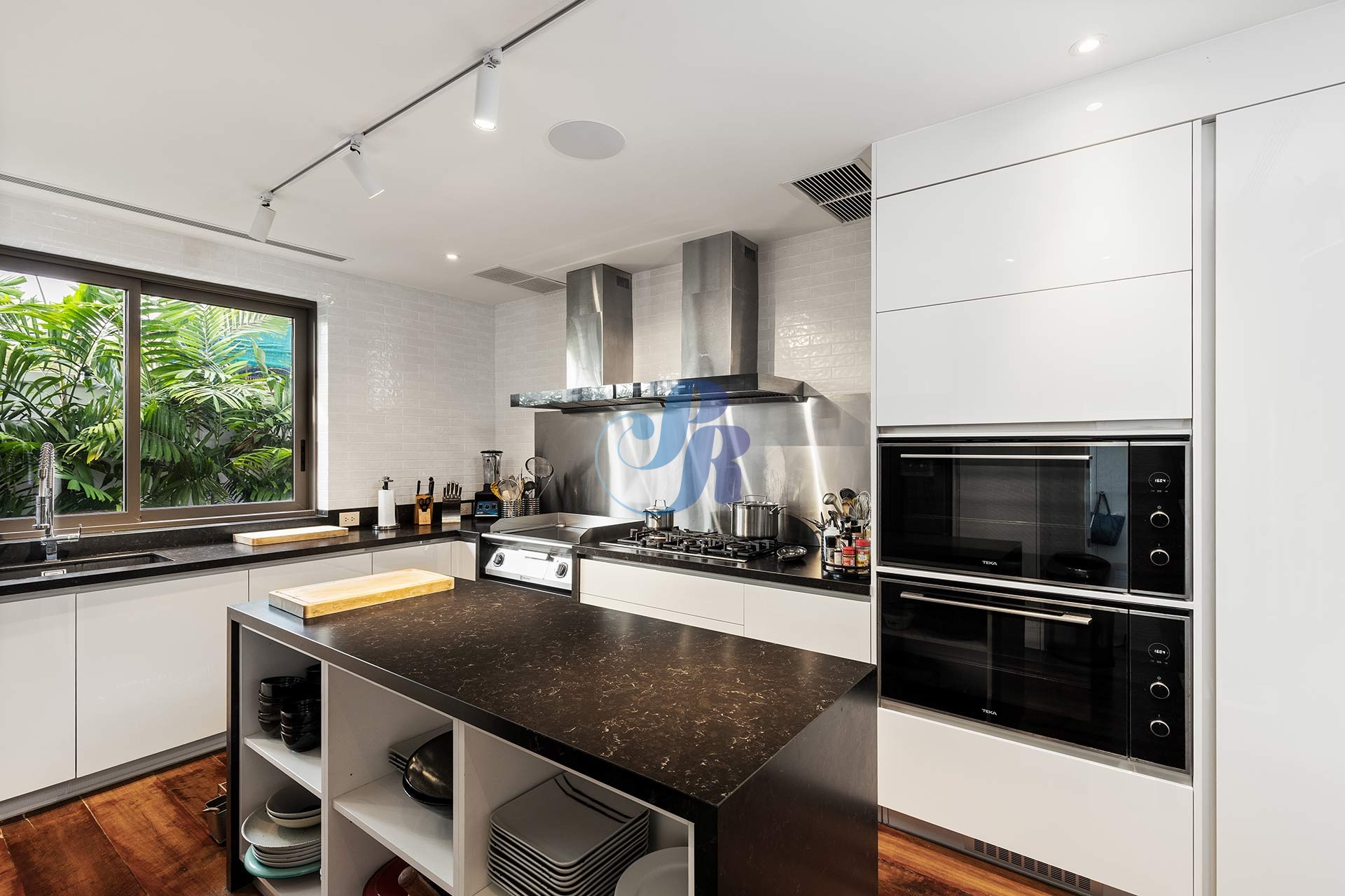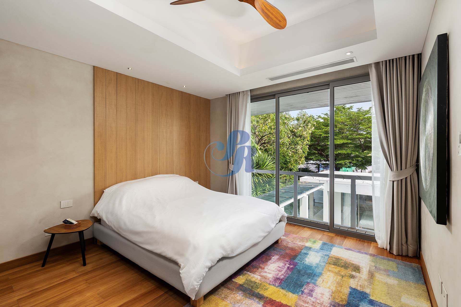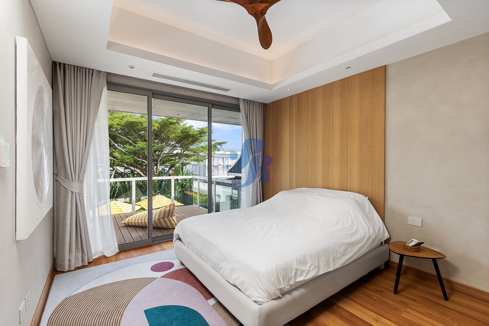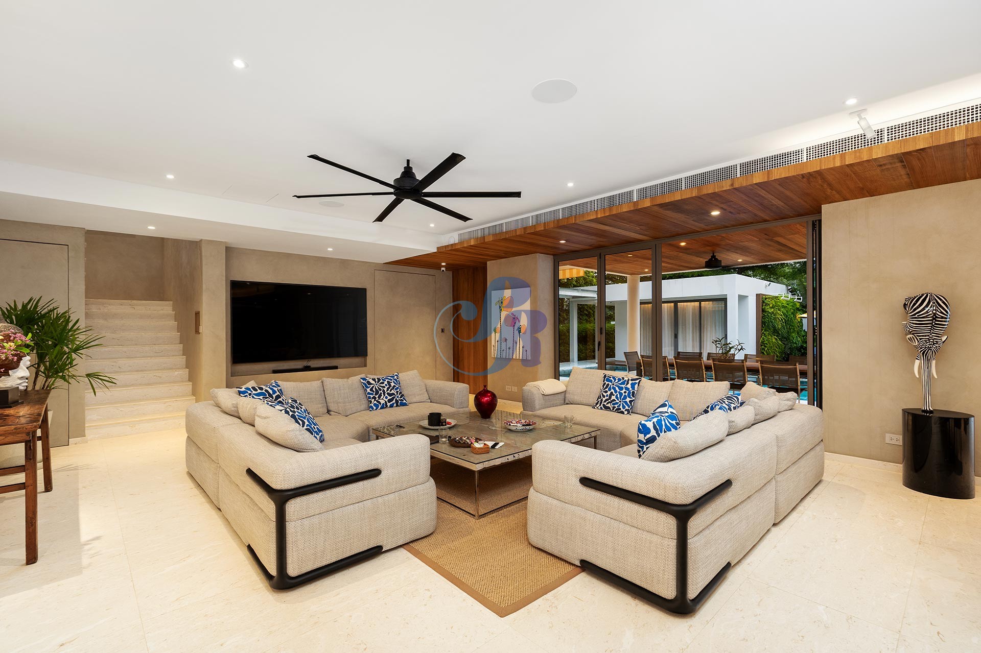 Резиденция включает в себя пять просторных спален и пять ванных комнат, а также отдельную прачечную и крытую парковку на два автомобиля. В центре зоны отдыха на открытом воздухе расположен впечатляющий бассейн размером 20 на 6 метров, украшенный архитектурной светодиодной подсветкой, создающей элегантную атмосферу как для дневного отдыха, так и для вечерних развлечений.
